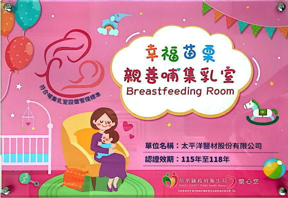 太平洋医材荣获苗栗县政府「亲善哺(集)乳室」认证」,打造友善母性职场再添佳绩