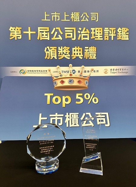 本公司获评为第十届公司治理评鉴排名前5%,且为「市值50亿元至100亿元」类别排名前5%之上柜公司,详细资讯,请见
