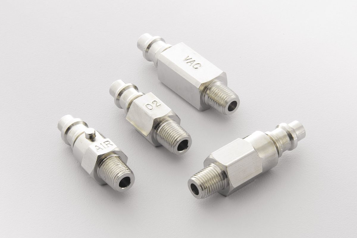 快速接頭為醫療氣體設備與氣體管道相連通之連接元件。醫療器械插入後可快速連通、拔出後自動封閉氣體,主在將醫療用氧氣、壓縮空氣、抽吸負壓或笑氣等輸送到醫院各病房單位或手術室管道內。是種不用任何工具,只需用雙手或單手操作就能讓供氣設備與氣體出口面板終端快速連接連接或脫離。